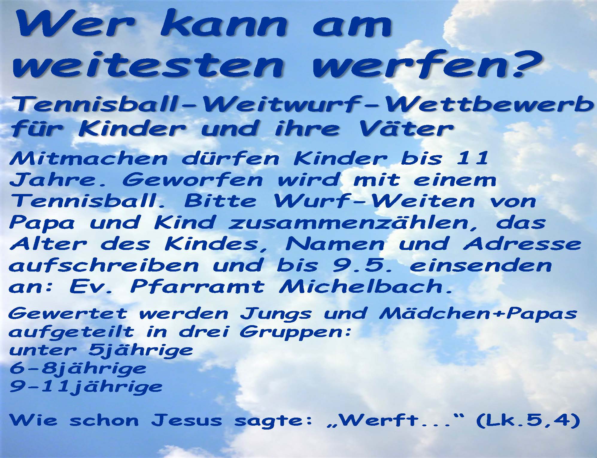 findet der Tauftag in der Kirche Michelbach statt.